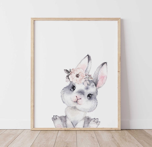 Affiche numérique | Lapin Fleurs Saumon
