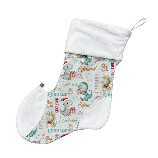 Bas de Noël | Dinosaures gris de Noël prénom répétitif