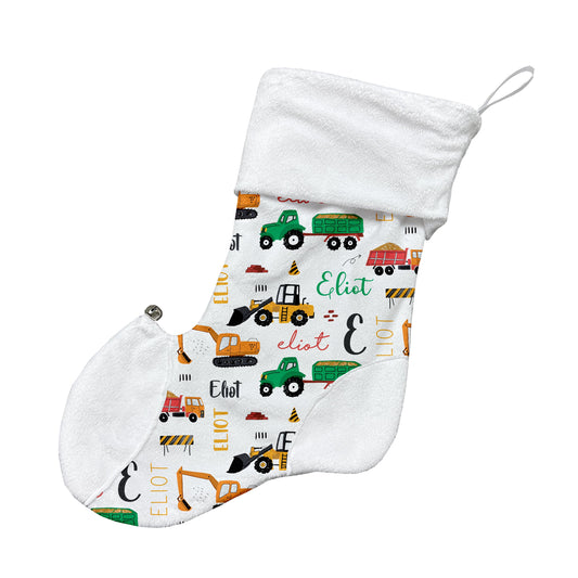 Bas de Noël | Machinerie et tracteurs verts prénom répétitif
