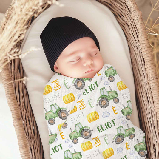 Couverture en mousseline de bambou | Tracteurs Verts prénom répétitif