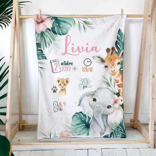Couverture en minky personnalisée | Animaux de la Jungle Floral Safari