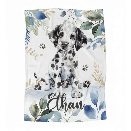 Couverture en minky personnalisée | Dalmatien et feuillage bleu