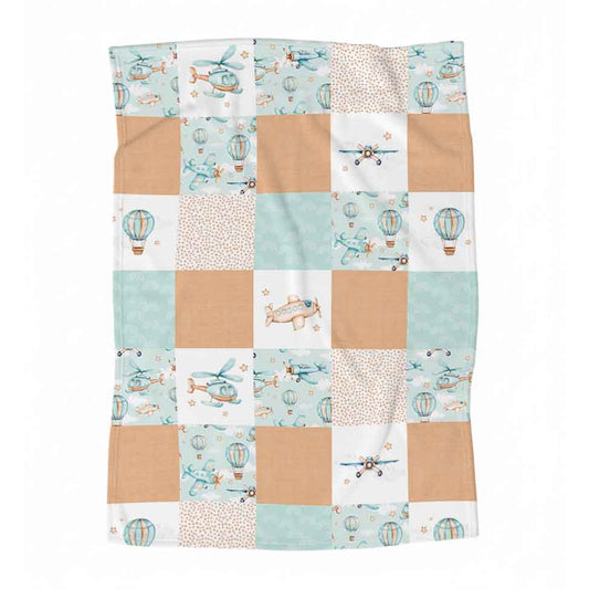 Couverture en minky personnalisée | Aventures dans les airs patchwork