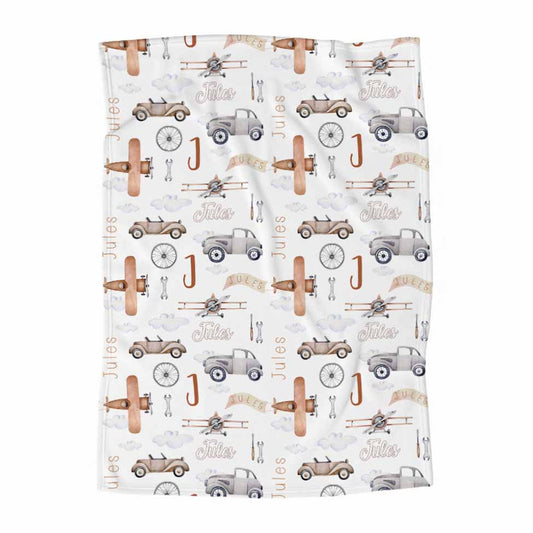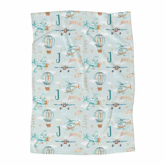 Couverture en minky | Aventures dans les airs prénom répétitif