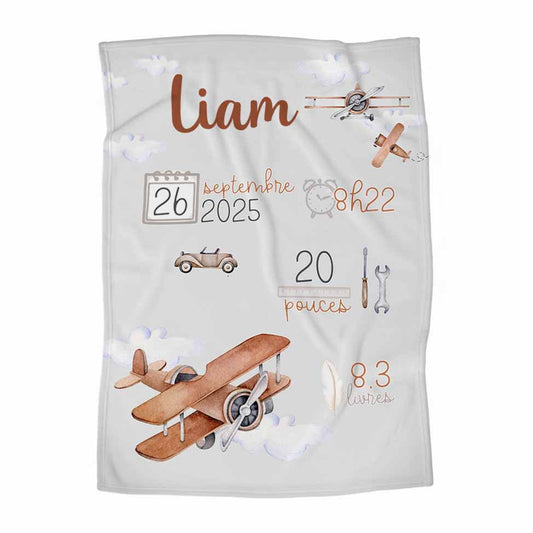 Couverture en minky personnalisée | Aéroport avec infos de naissance