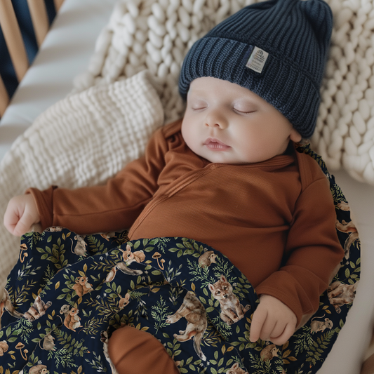 Drap contour pour bassinette | Promenade en forêt | Tipis marine fond blanc