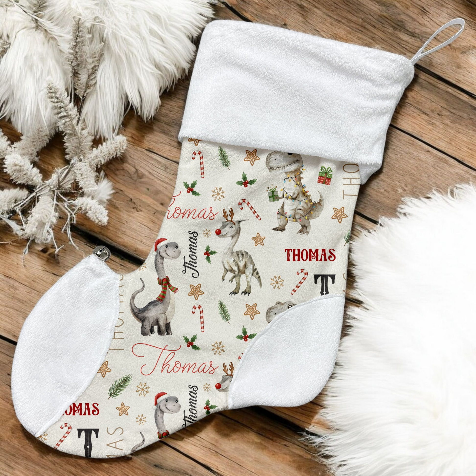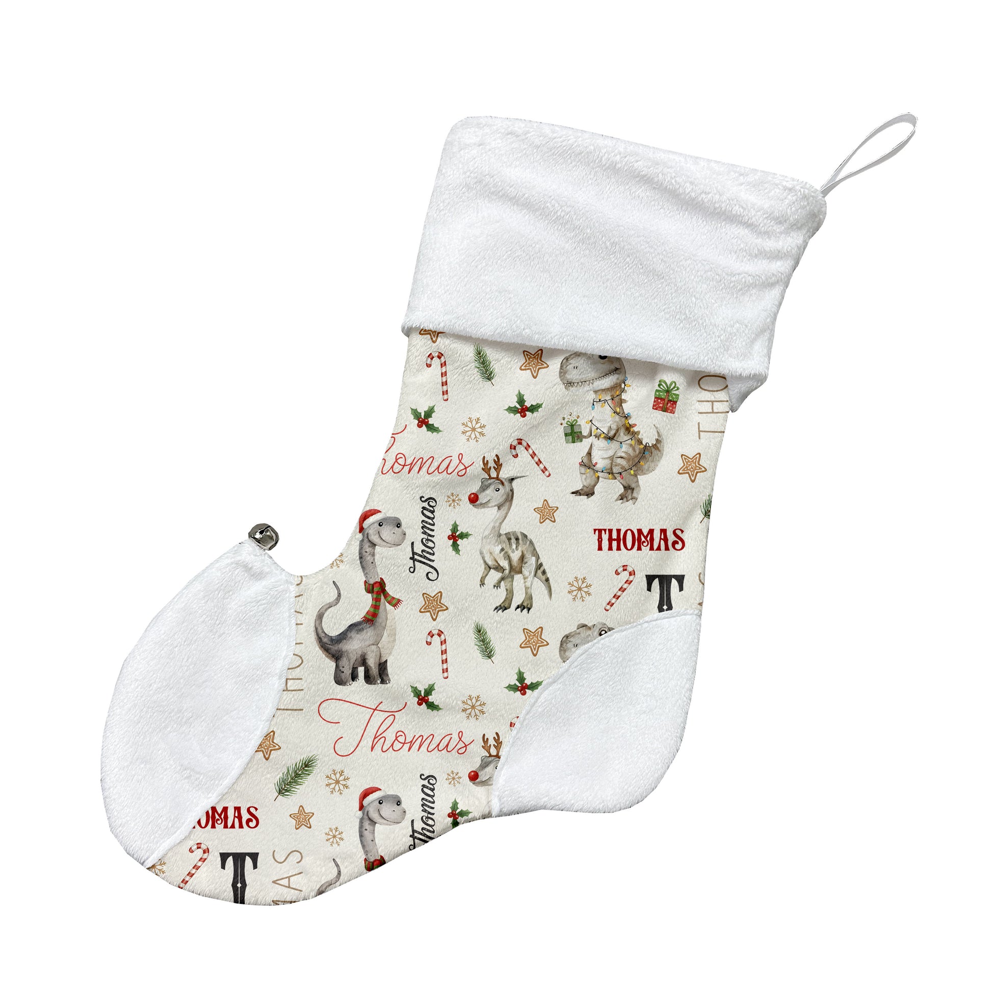 Bas de Noël | Dinosaures gris de Noël prénom répétitif