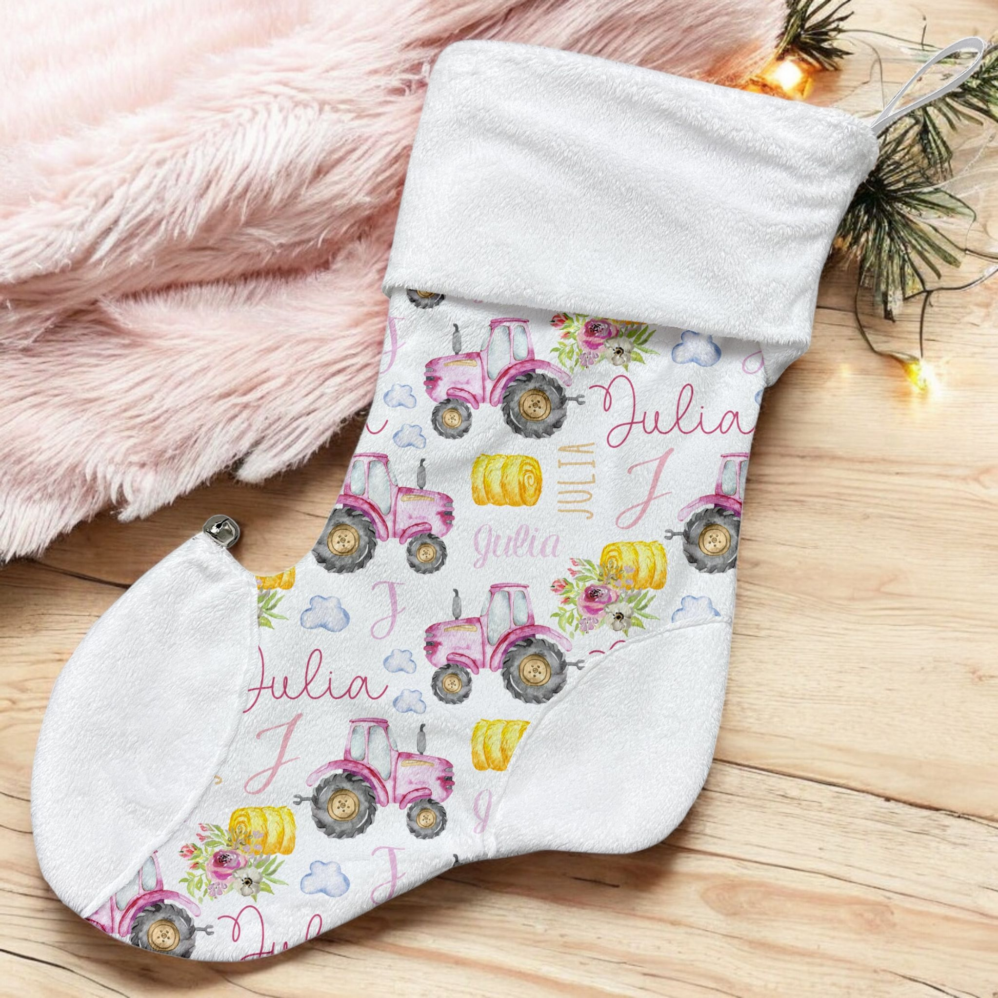 Bas de Noël | Tracteur Rose prénom répétitif