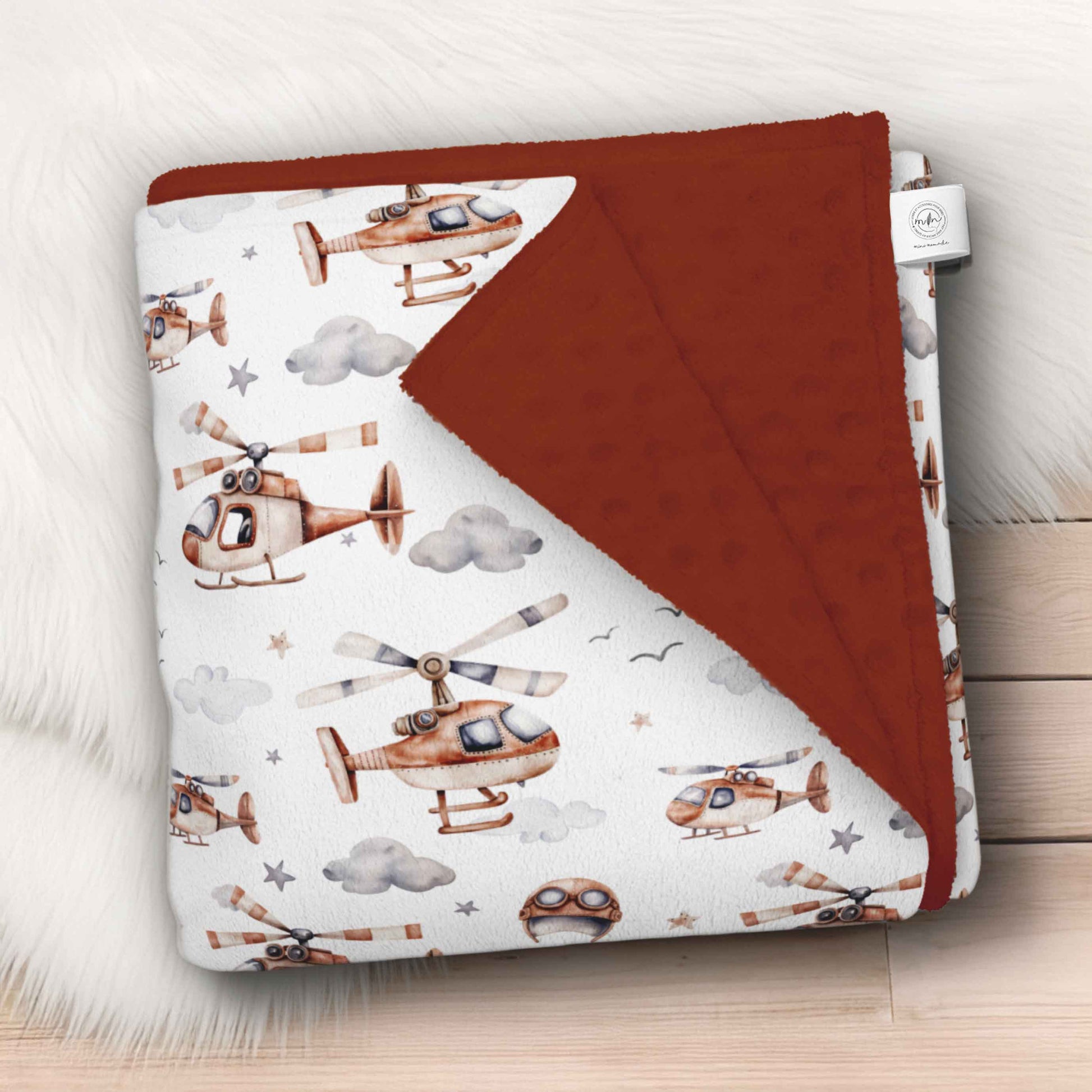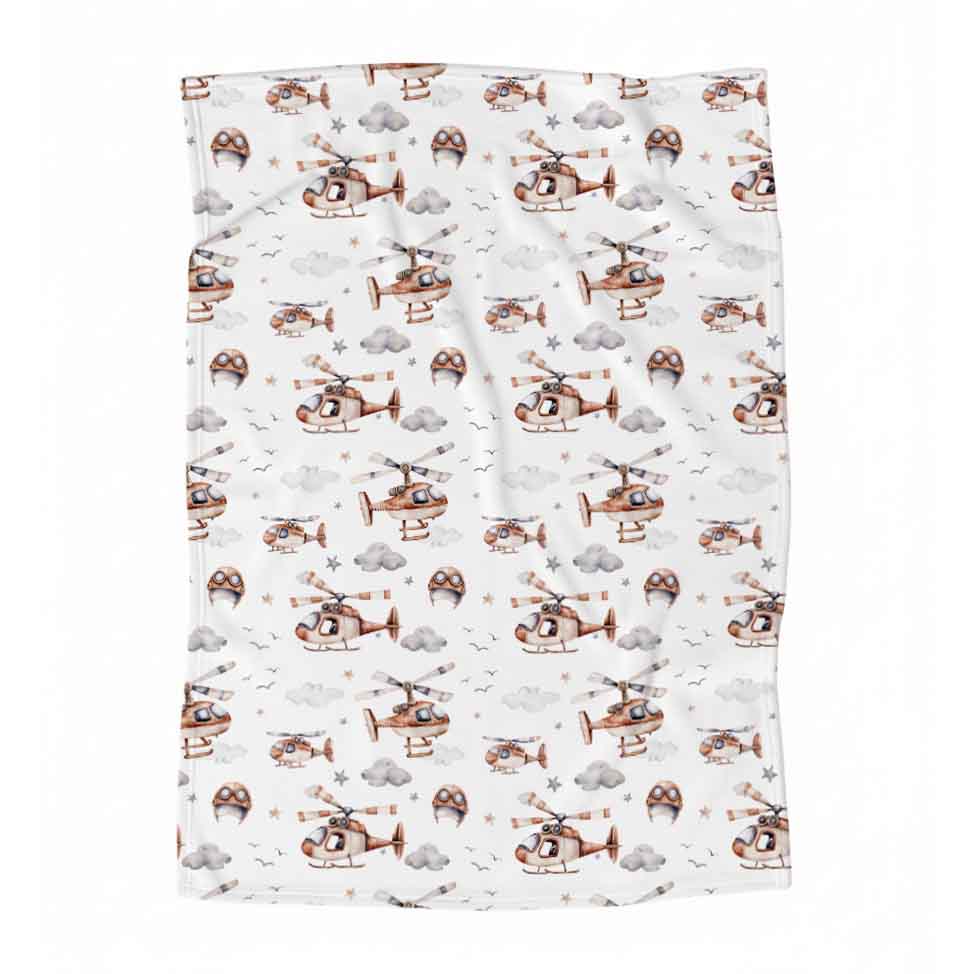 Couverture en minky | Hélicoptères rouilles et casques