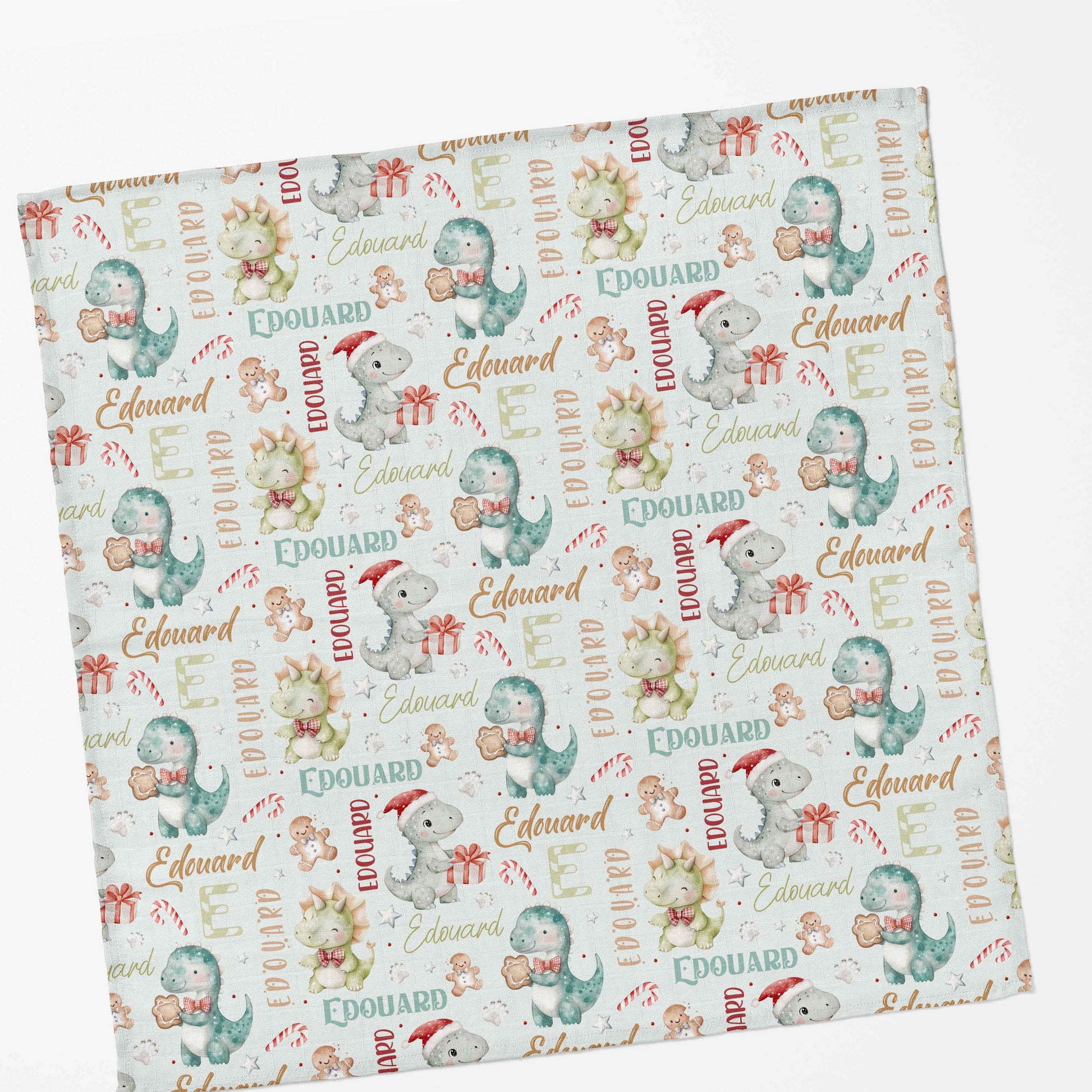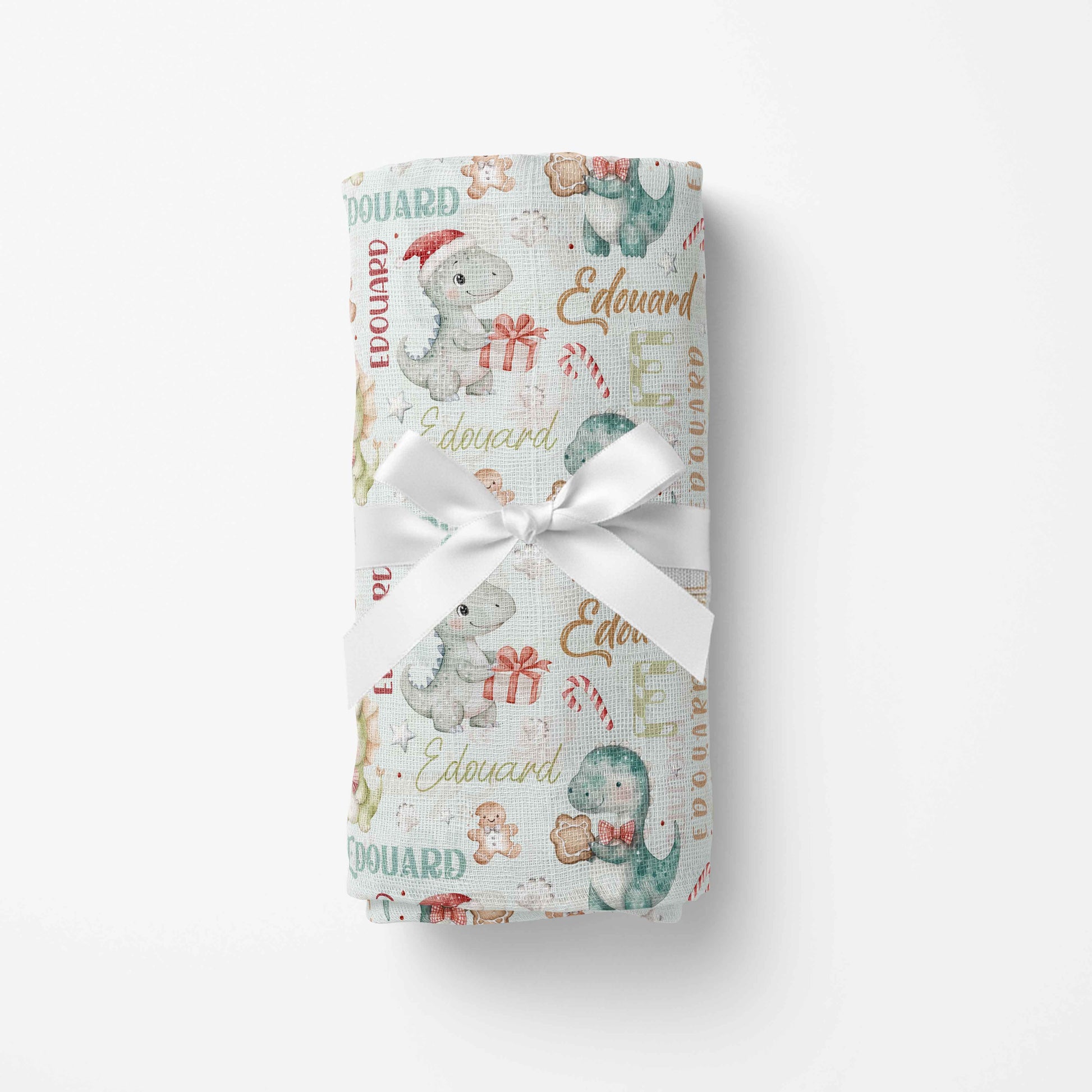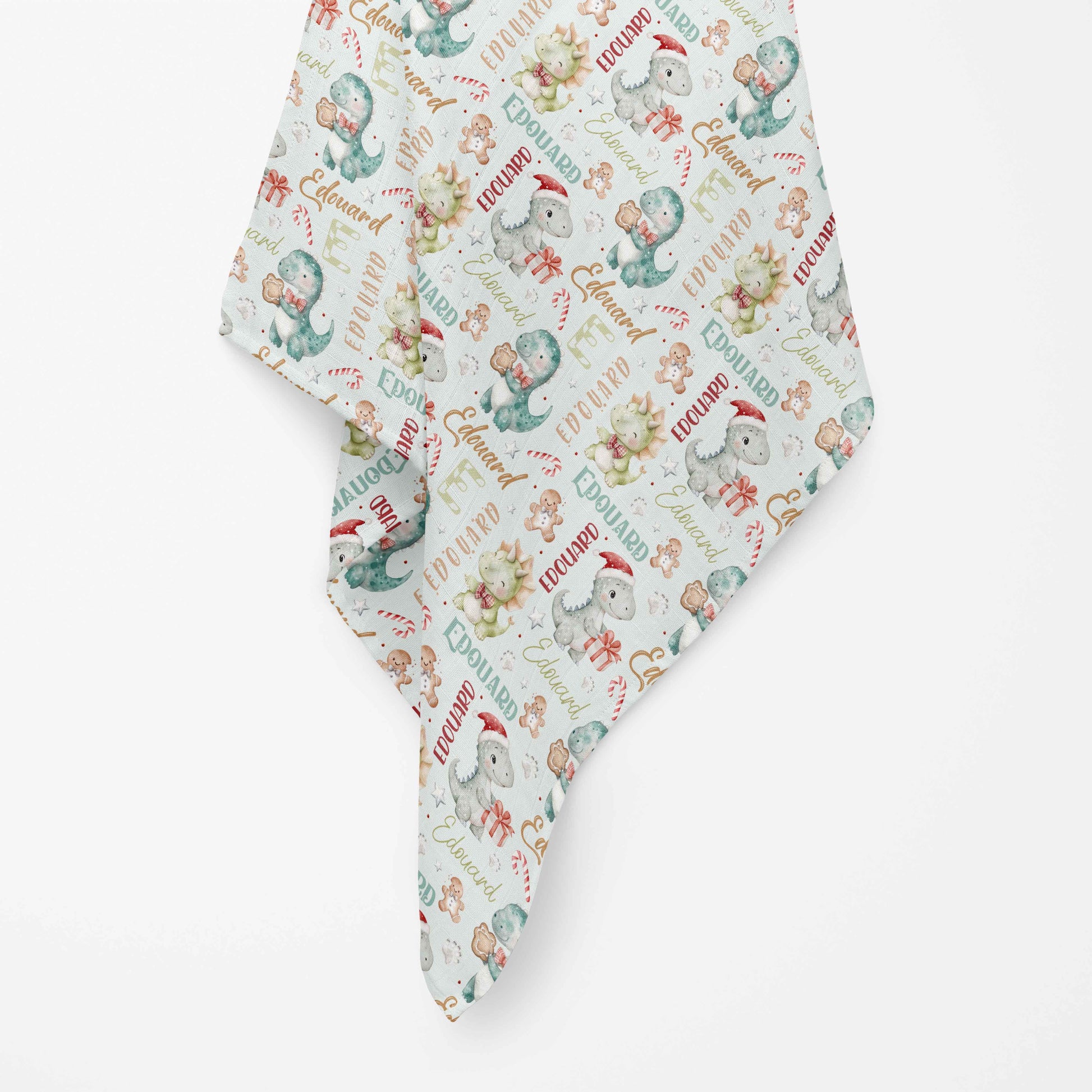 Couverture en mousseline de bambou | Dinos de Noël prénom répétitif