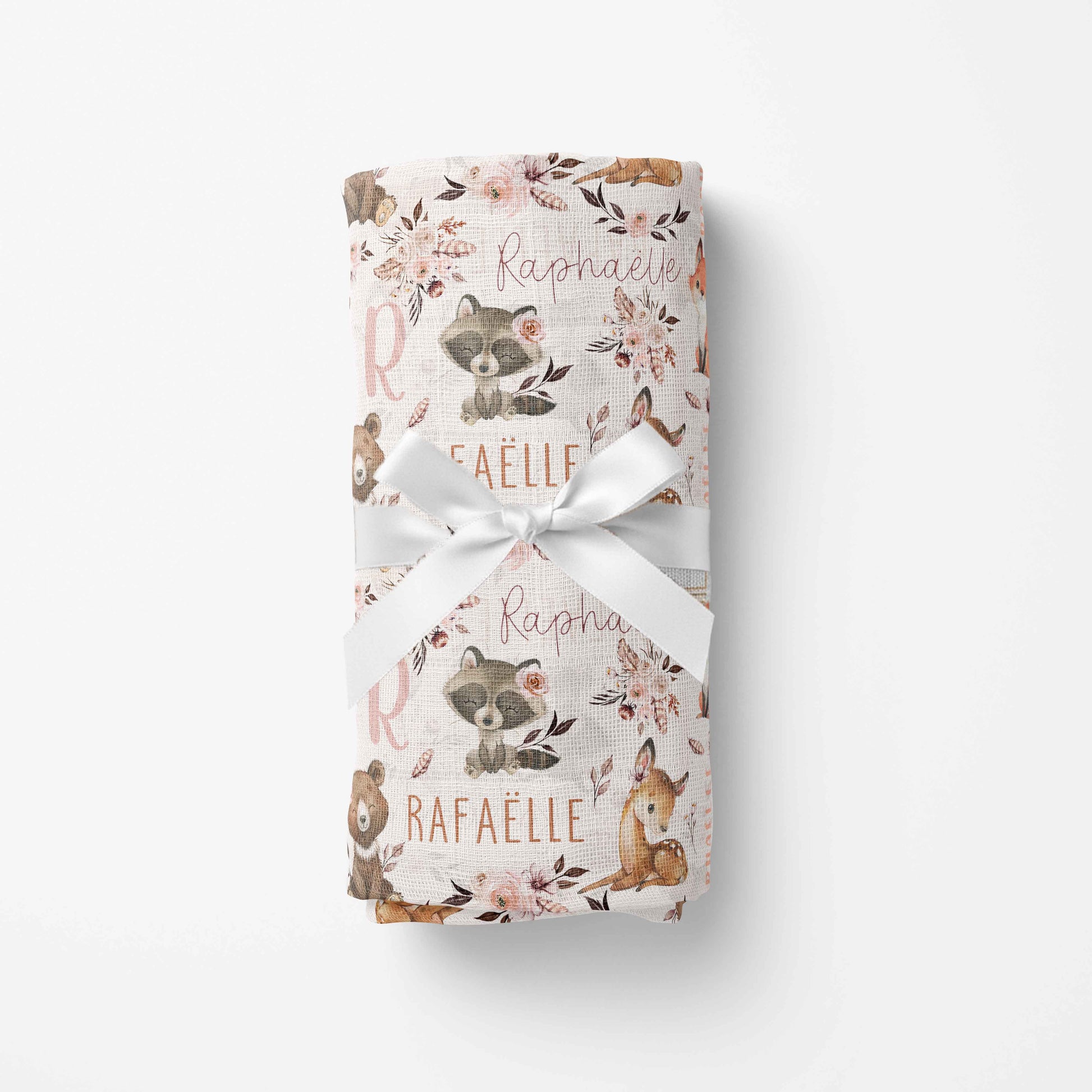 Cette couverture en mousseline de bambou est parfaite pour envelopper bébé dans un doux cocon personnalisé avec son prénom. Les animaux de la forêt apporteront une touche amusante à vos moments câlins avec bébé. Fabriquée avec soin, elle est légère et douce comme une plume !