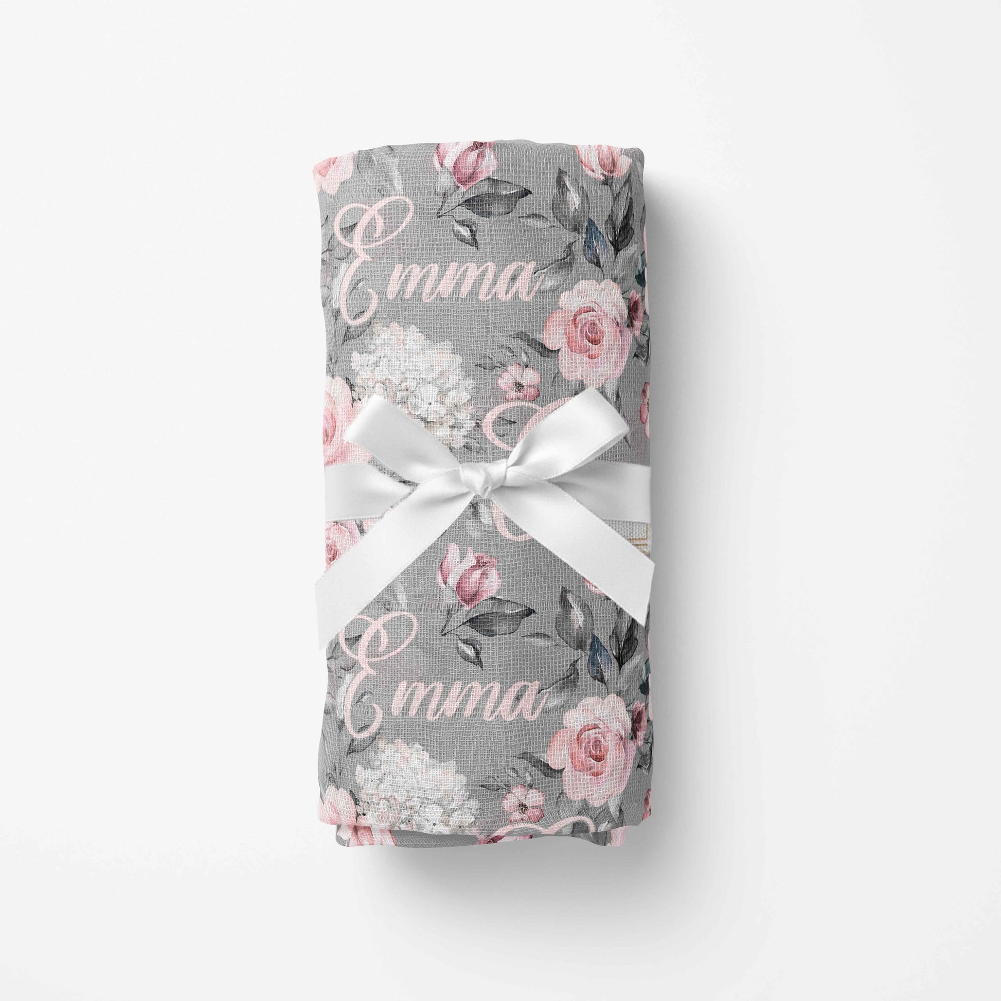 Enveloppez bébé dans cette couverture en mousseline de bambou douce et légère, personnalisée avec son prénom. Fabriquée avec soin, cette couverture avec de jolies roses est parfaite pour les doux moments avec bébé.