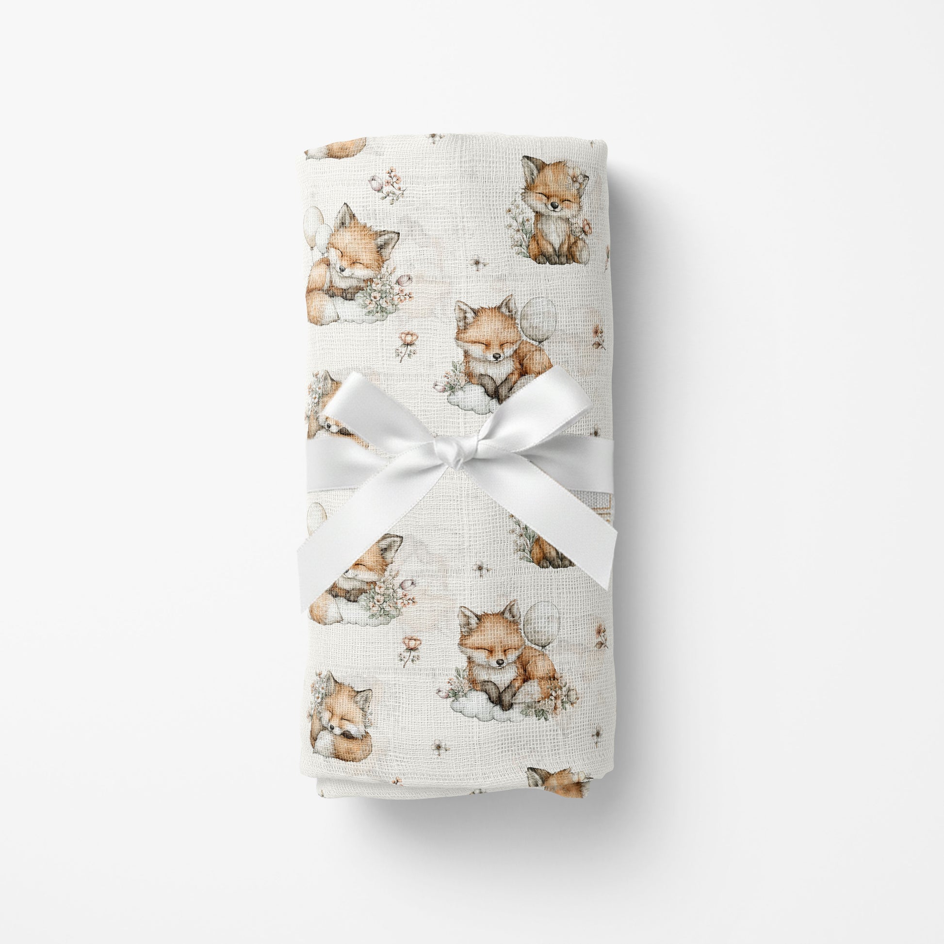 Couverture en mousseline de bambou | Petite renarde et ballons