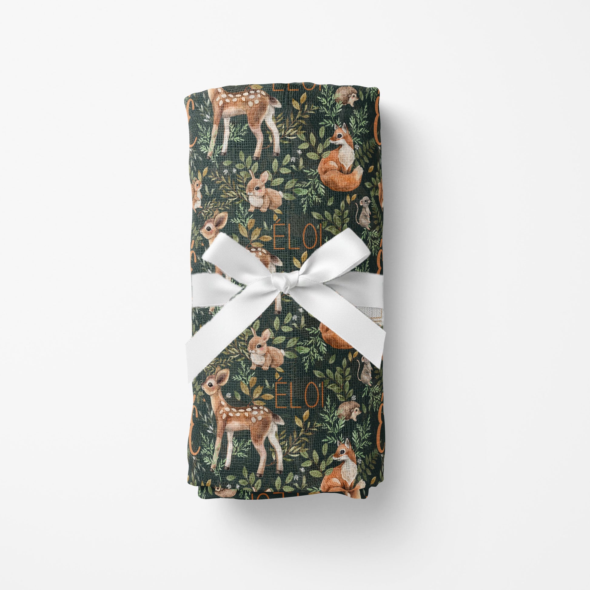 Couverture en mousseline de bambou | Forêt enchantée prénom répétitif