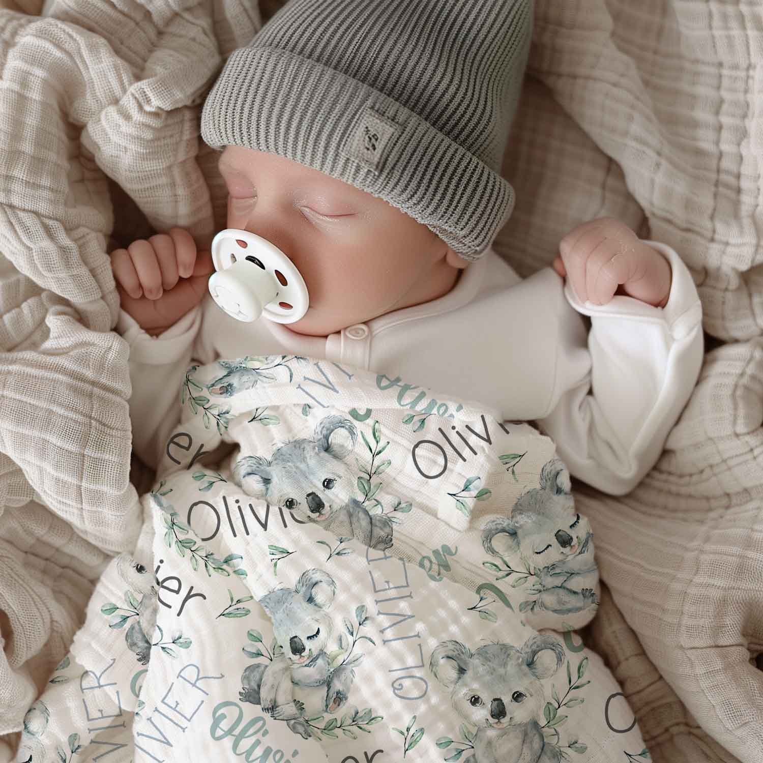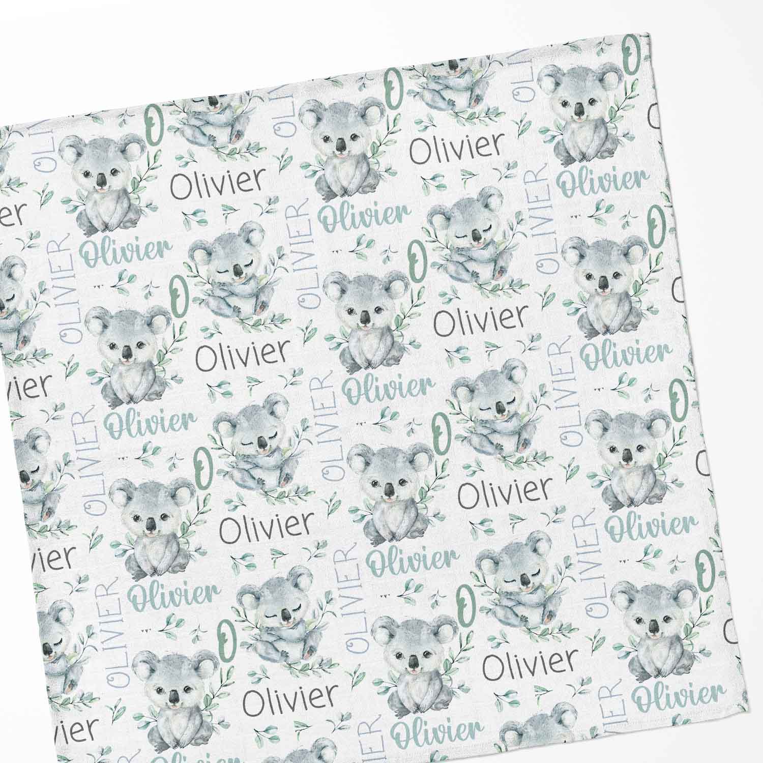Couverture en mousseline de bambou | Koala eucalyptus prénom répétitif