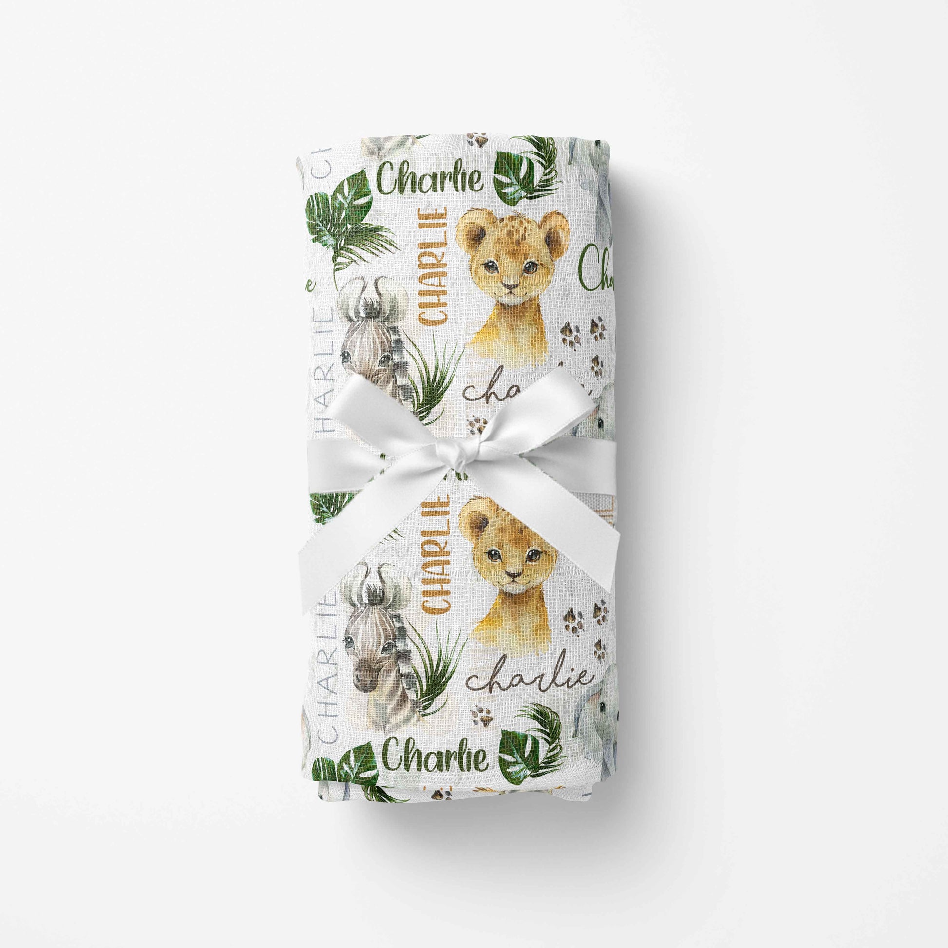 Couverture en mousseline de bambou | Petits Animaux d'Afrique prénom répétitif
