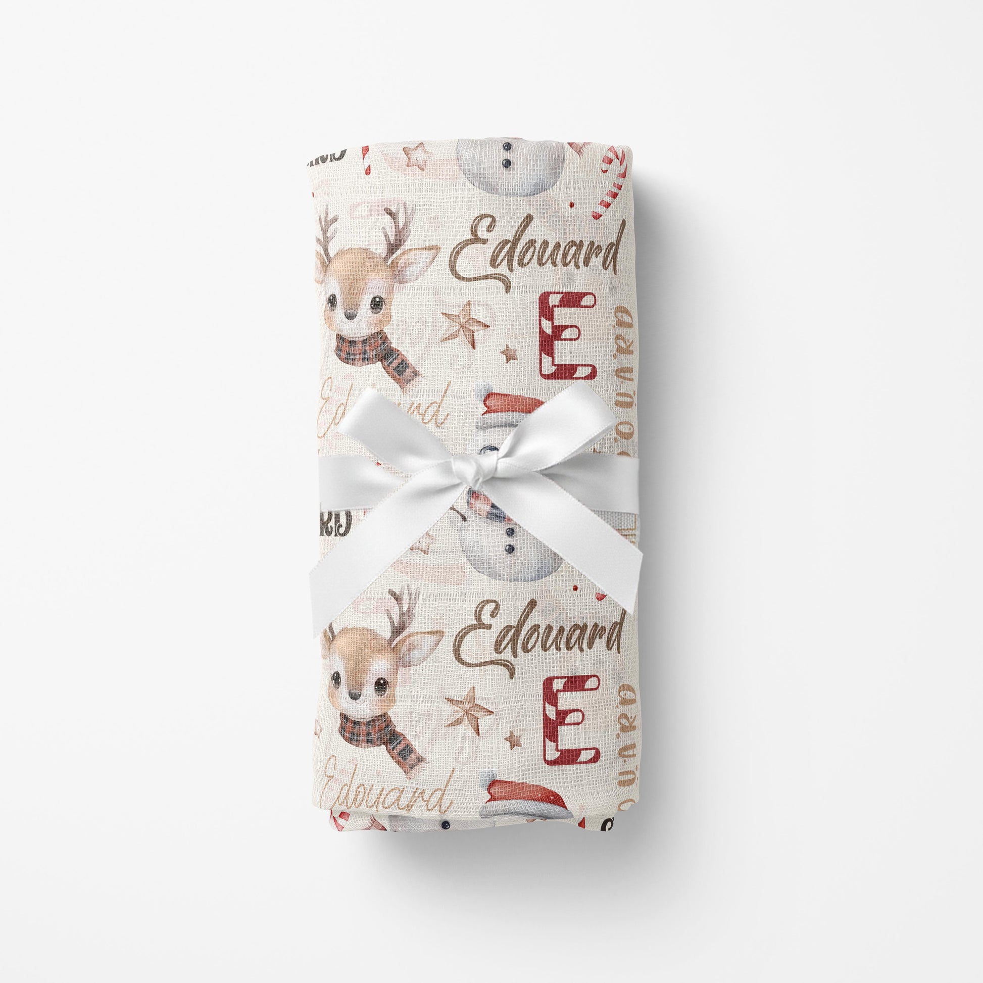 Couverture en mousseline de bambou | Premier Noël prénom répétitif