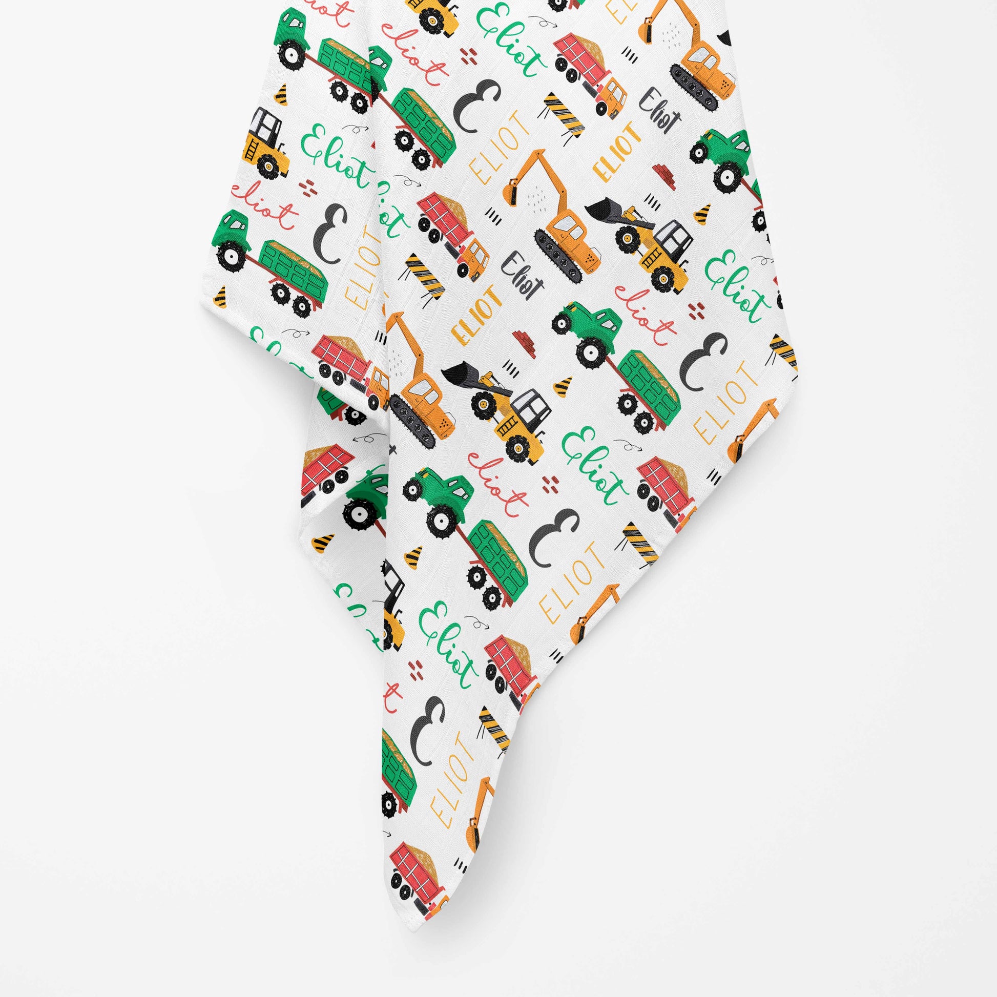 Couverture en mousseline de bambou | Machinerie et tracteurs verts prénom répétitif