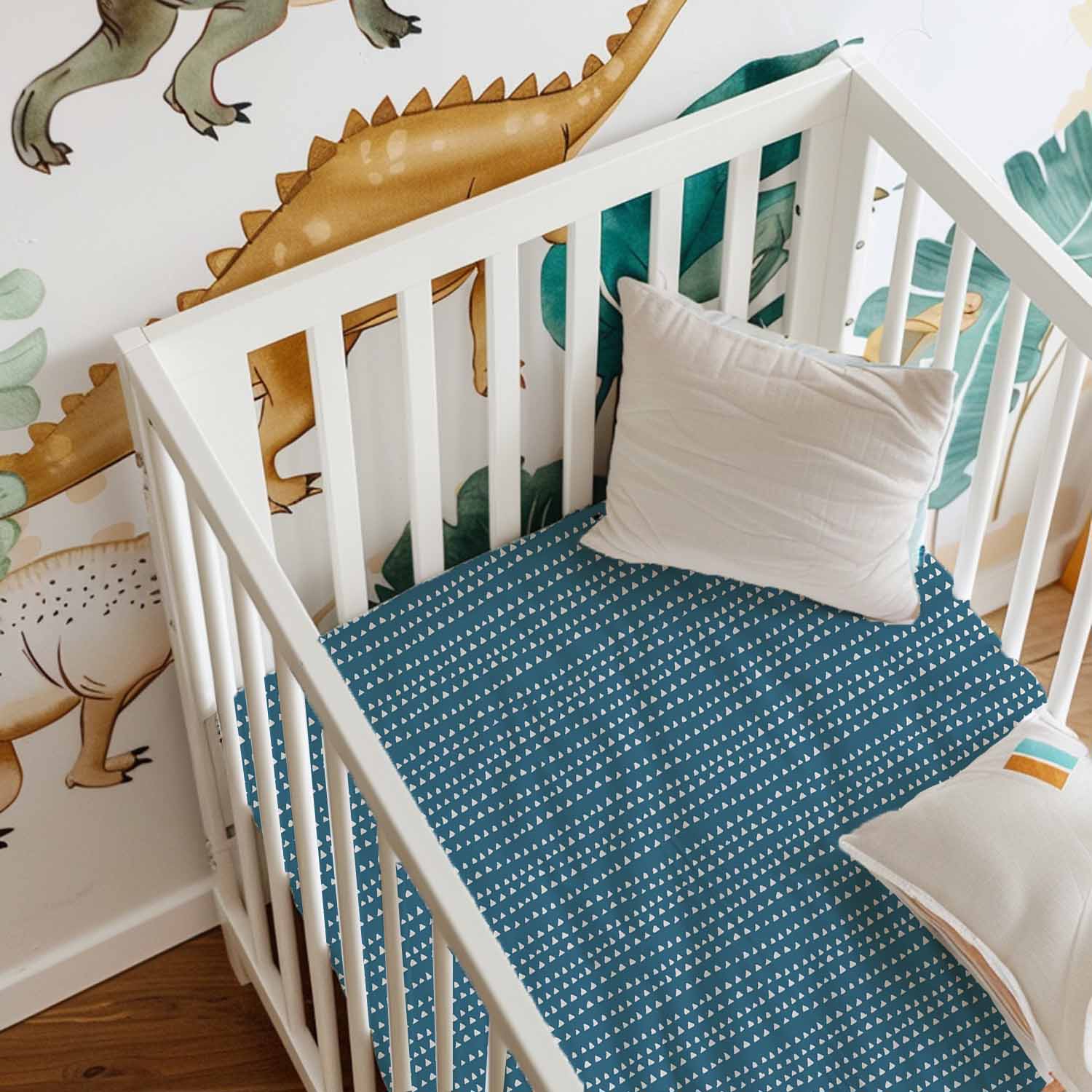 Drap contour pour bassinette | Lignes triangulaires bleu pétrole