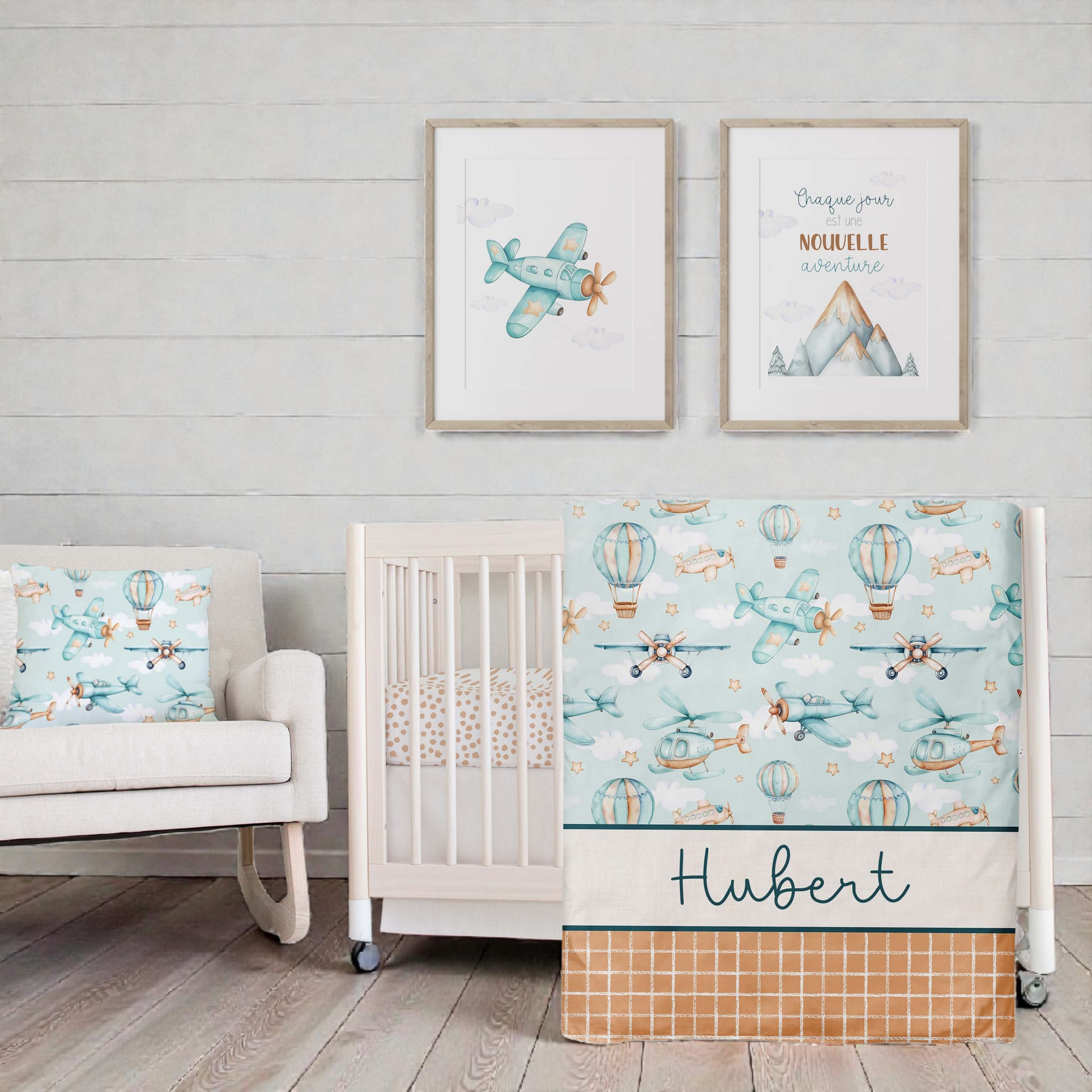 Embarquez pour un voyage amusant avec notre literie aéroportuaire pour bébé - un ensemble complet pour une chambre aventureuse et douillette.