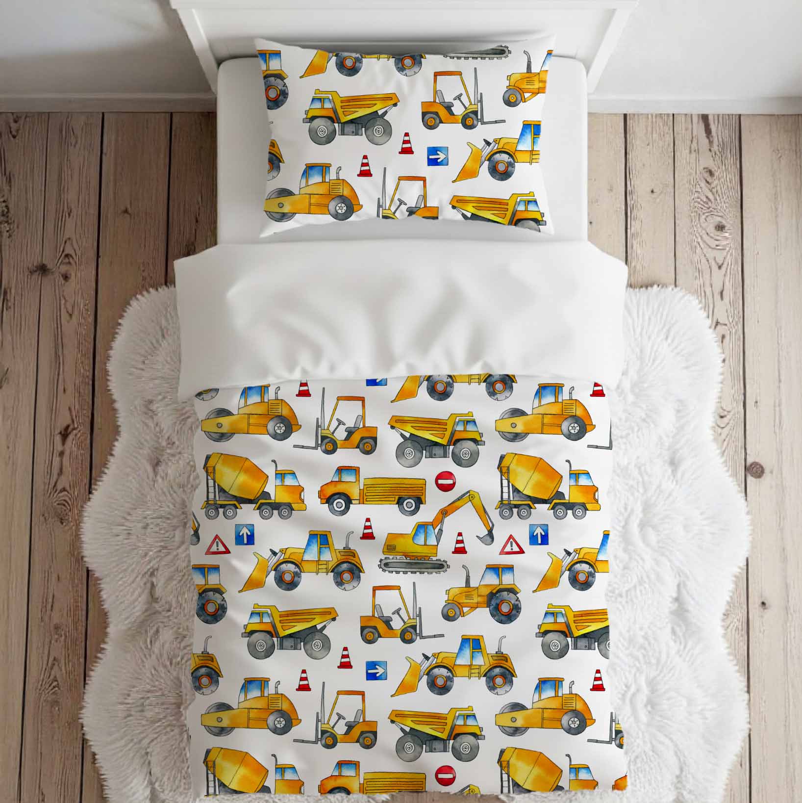 Literie pour lit simple | Construction aquarelle jaune