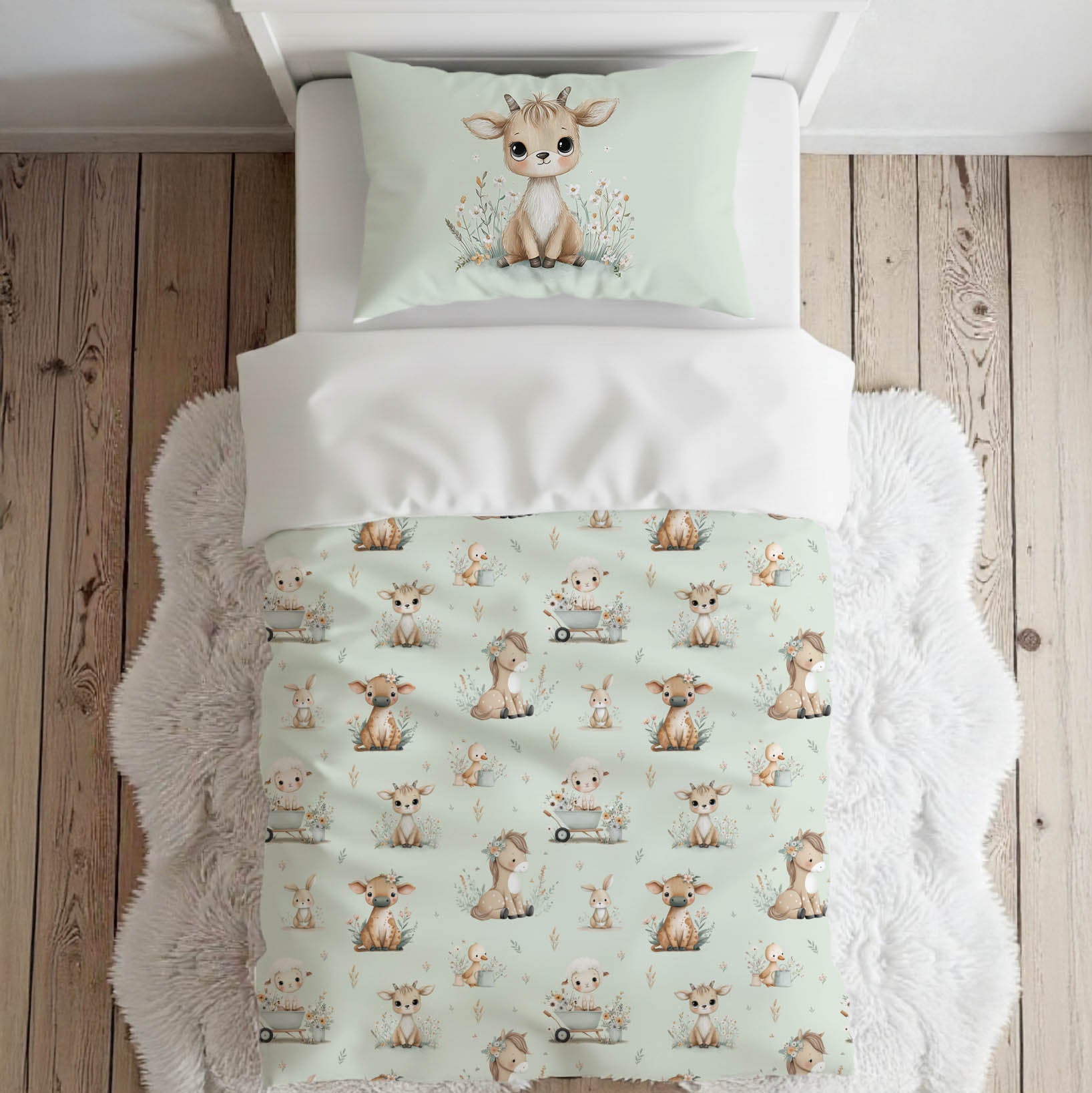 Literie pour lit simple | Ferme de rêve fond menthe