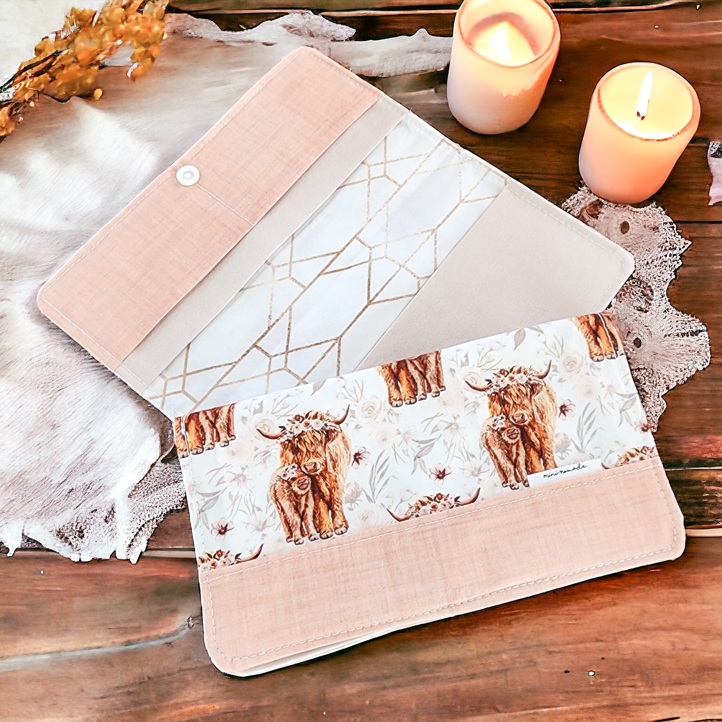 Protège-carnet de santé | Vaches Highland Fleurs Latté